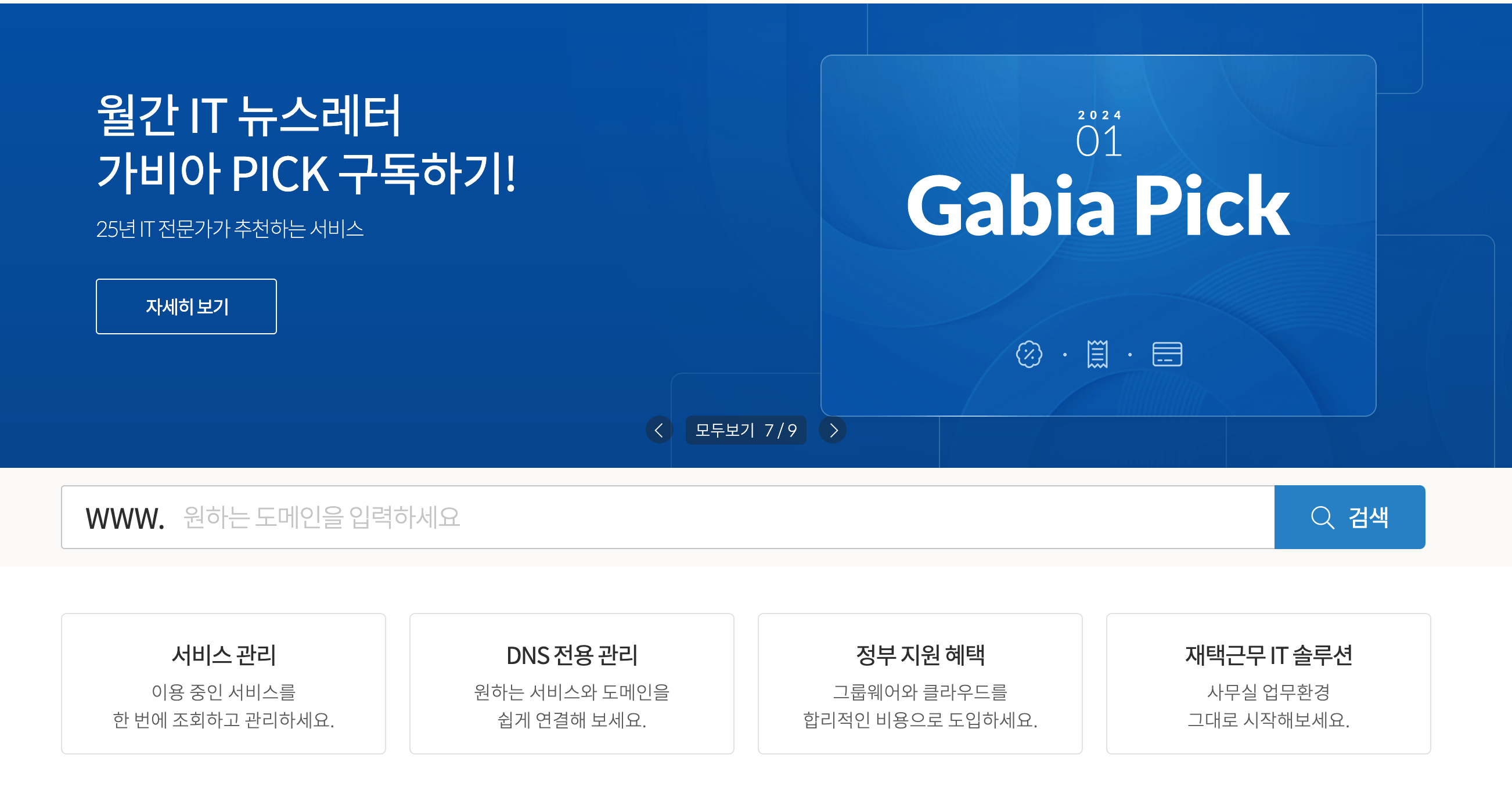 1. 구글 검색창에 가비아를 입력하면 맨 위에 나오는 가비아 주소를 클릭한다. 로그인을 해야하는데 구글 계정으로 연동하면 쉽게 로그인이 가능하다.