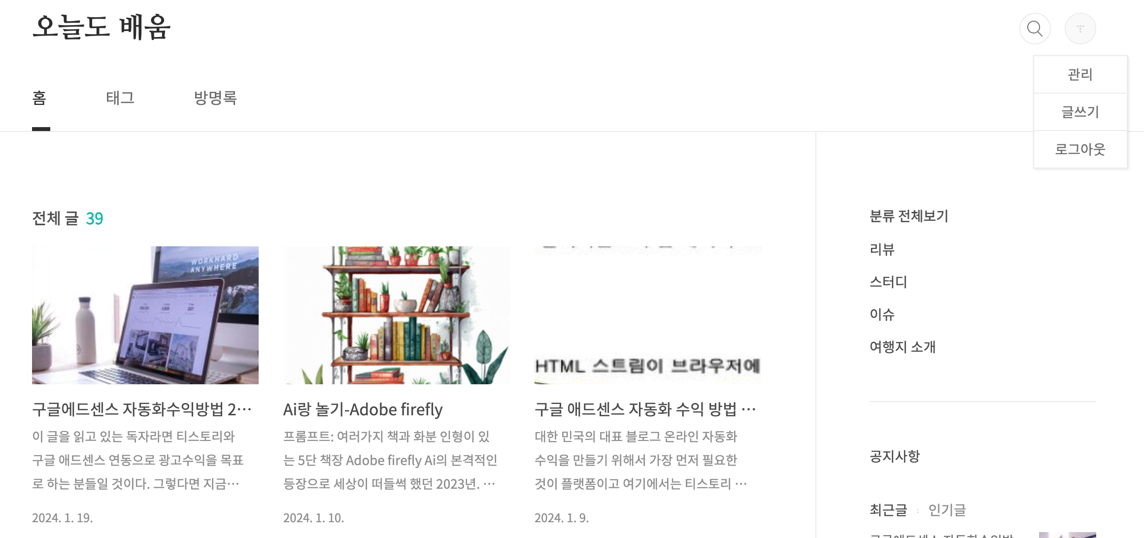 | 구글에드센스 자동화수익방법 2탄-티스토리 가입 (1) | 2024.01.19 |