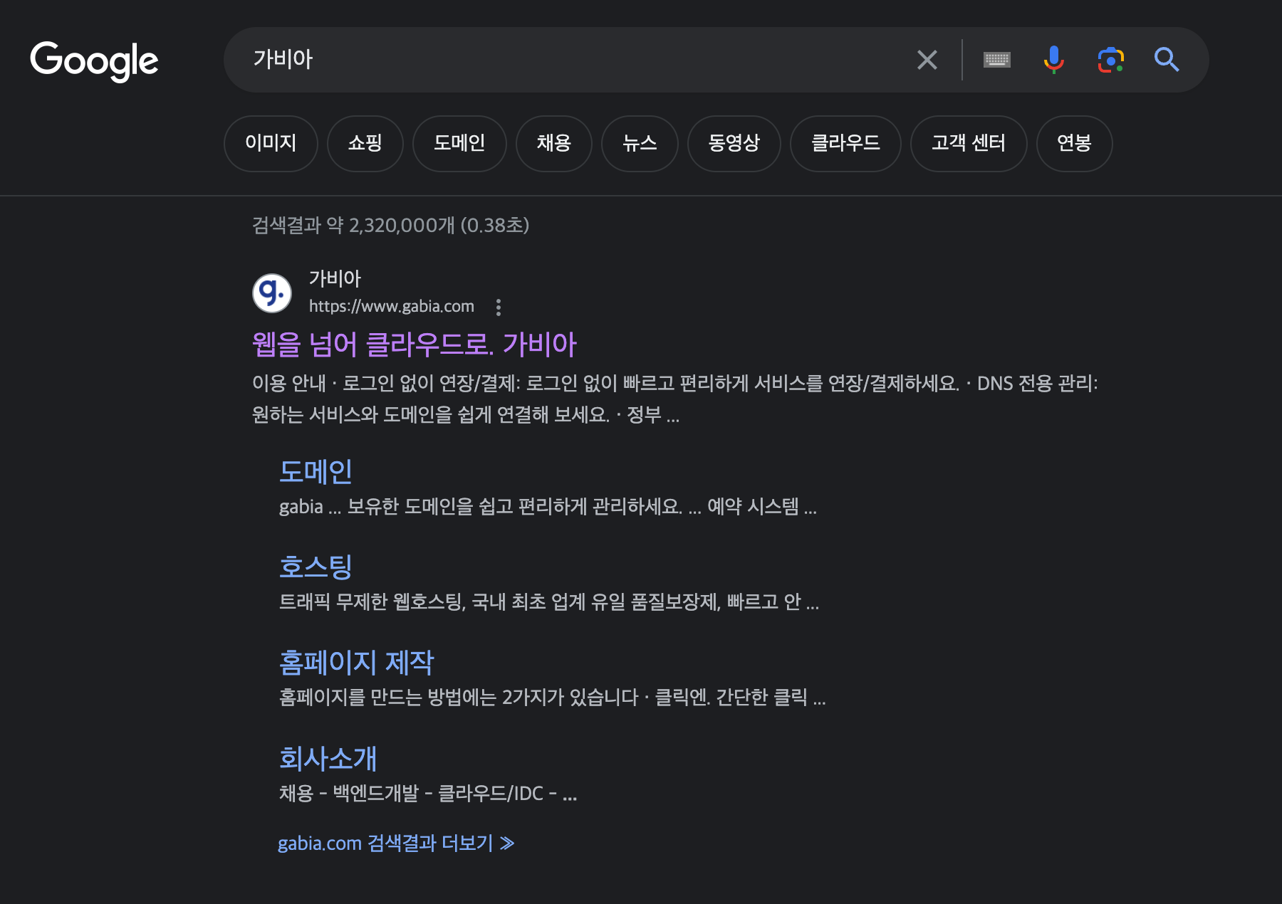 1. 구글 검색창에 가비아를 입력하면 맨 위에 나오는 가비아 주소를 클릭한다. 로그인을 해야하는데 구글 계정으로 연동하면 쉽게 로그인이 가능하다.