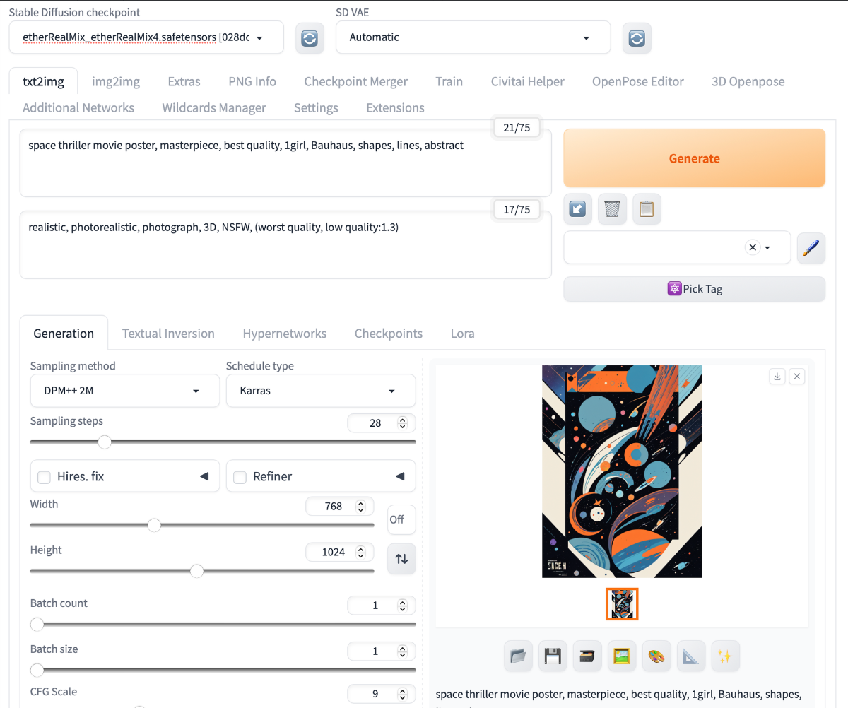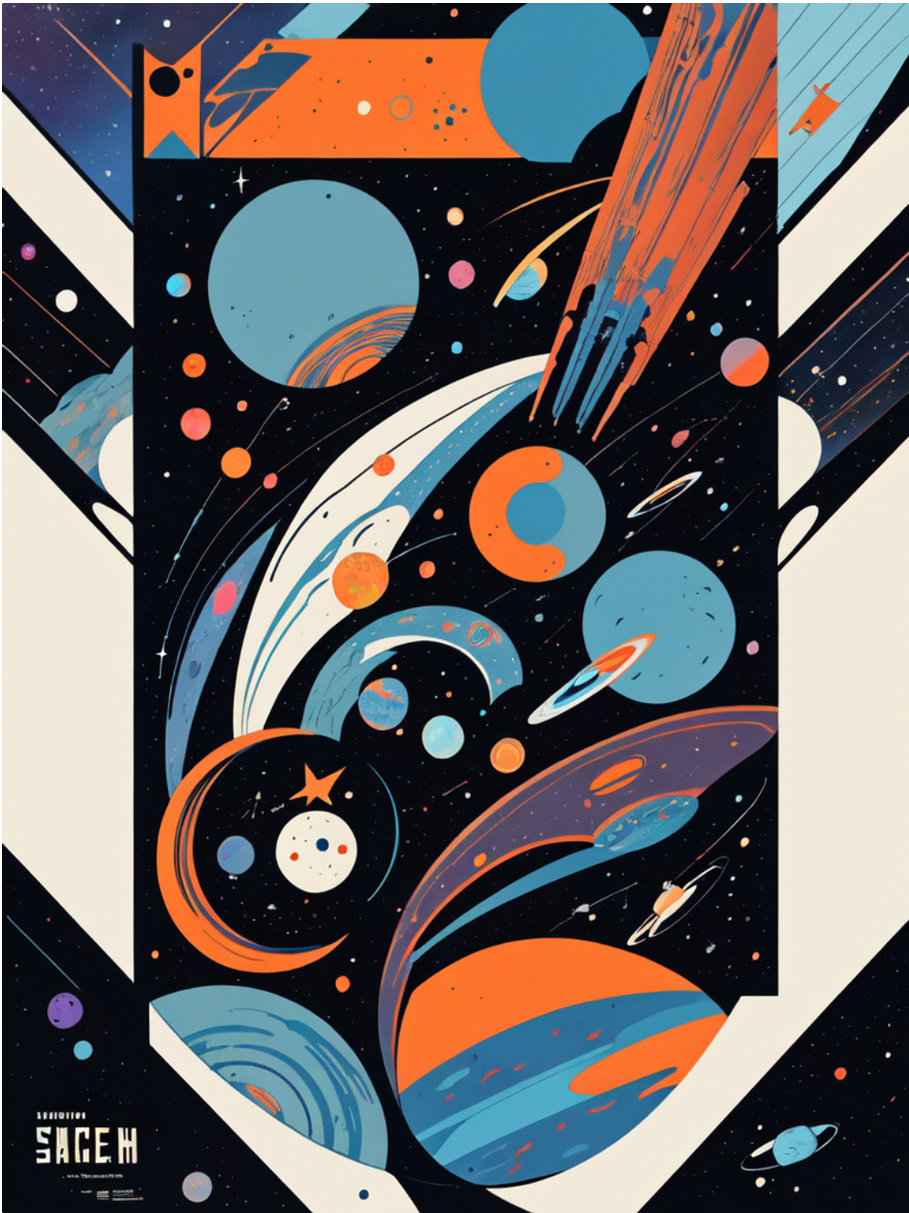 프롬프트 space thriller movie poster, masterpiece, best quality, 1girl, Bauhaus, shapes, lines, abstract