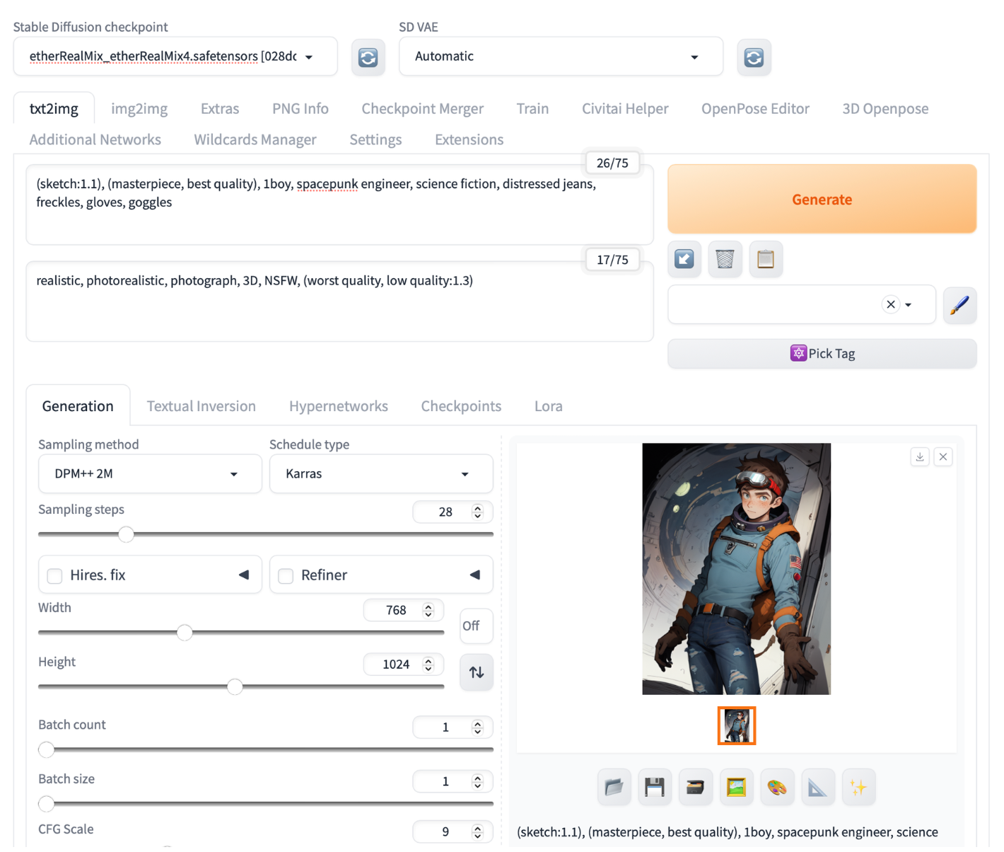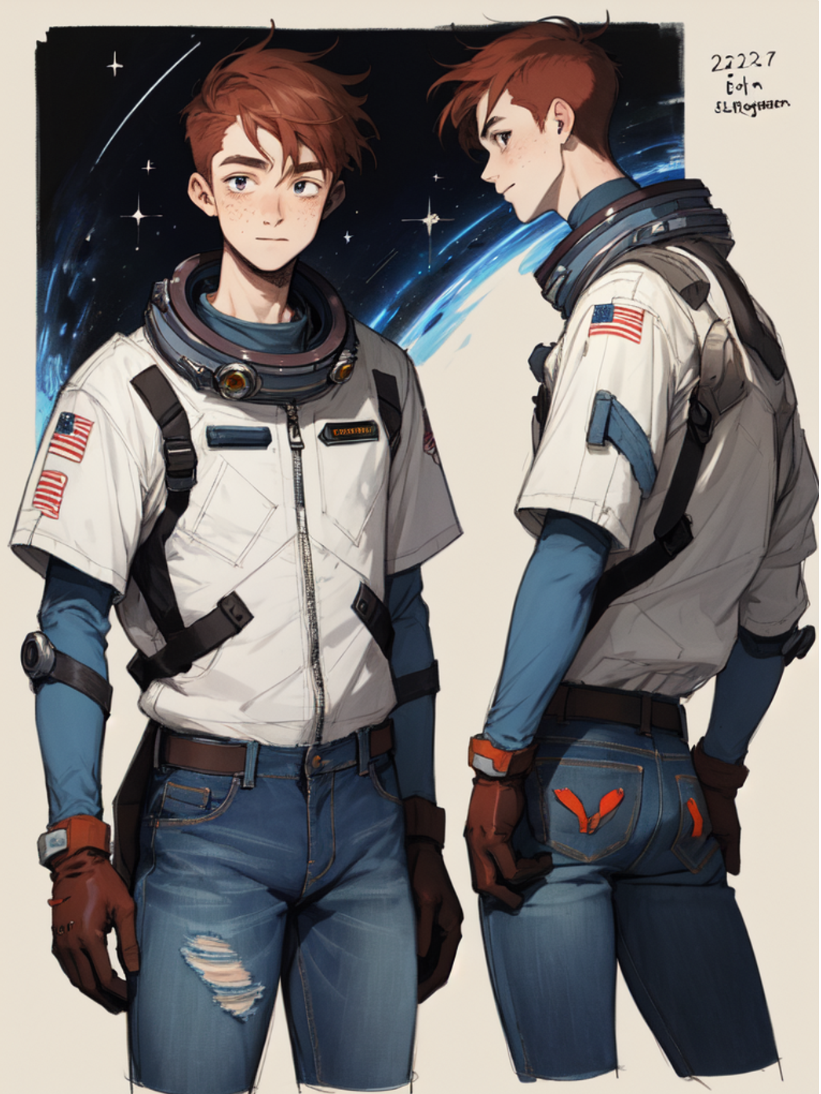 프롬프트 (sketch:1.1), (masterpiece, best quality), 1boy, spacepunk engineer, science fiction, distressed jeans, freckles, gloves, goggles