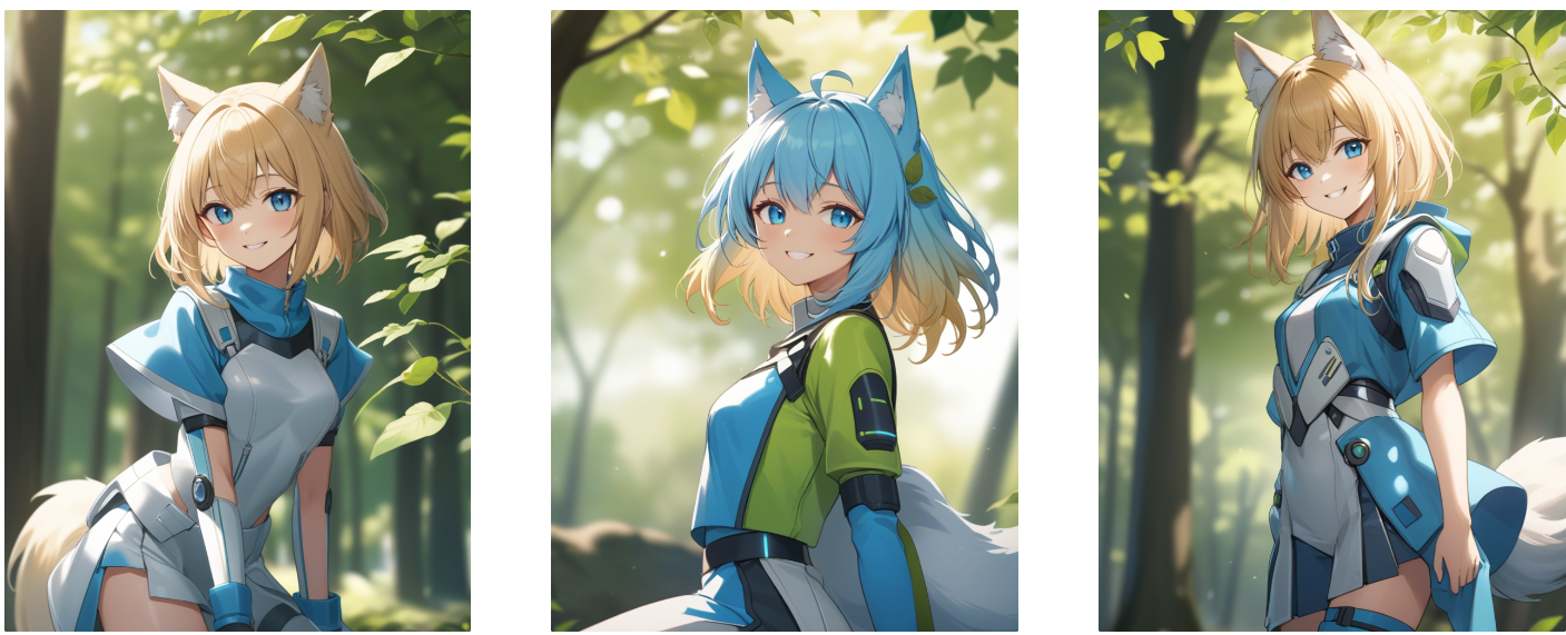 귀엽고 사랑스럽다라는 특징은 모델에 세팅된 느낌 그대로 구현이 되지만 스타일이나 포즈, 표정, 컬러값 등을 교체하면서 미묘하게 달라지는 결과 값을 확인할 수 있다. 스테이블디퓨전을 처음 시작할때는 마음에 드는 샘플로 기본 값을 두고 여러 스타일을 적용해보며 익숙해지는 방법이 좋을듯 하다.