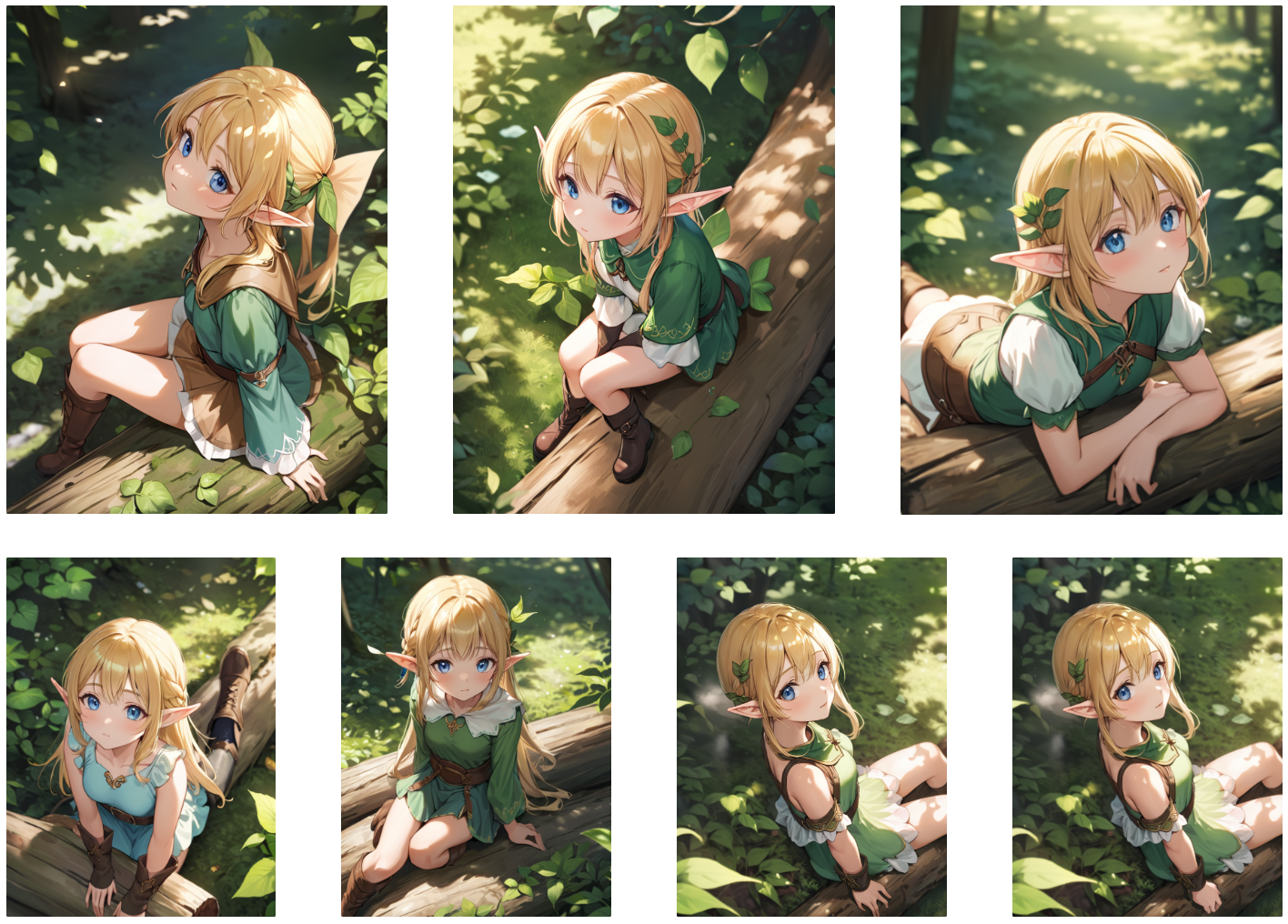 얼핏보기엔 완벽해 보이지만 자세히 보면 손가락이나 다리 형태 등의 오류가 많이 나오는것을 알 수 있다. 여기에 모아놓은 이미지들은 그 중 괜찮은 이미지들을 모아보았다. 위 이미지의 아래줄 세번째 이미지의 손가락 오류를 컨트롤넷 dw_openpose_full이나 depth_hand_refiner를 이용하여 조절한 이미지가 네번째 이미지이다.
