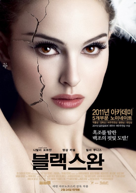 나탈리 포트만과 손잡고 '발레'를 소재로 만든 이 영화의 스토리는 성공을 향한 발레리나 소녀의 노력과 동경을 다룬다..하지만 영화의 내면에서 말하고 싶은 내용은 완벽에 대한 강박관념으로 스스로 파멸하는 주인공의 광기와 망상, 라이벌을 향한 질투와 동경이 빼곡하게 전시되어 있다. 겉으로 화려하게 보이는 발레리나의 욕망을 들추면서 인간 내면에 감춰진 양면성을 조명하는 셈이다. 이를 위하여 <블랙 스완>은 철저하게 고전적인 이분법에 기초하며 내러티브를 진행시킨다....선과 악, 청순과 퇴폐, 순결과 관능을 흰색과 검은색에 비유하는 단순 구조를 선택한 것이다...이분법에 의한 흑과 백은 밝음과 어둠, 상반된 이미지로 존재할 수밖에 없다..밝음이 희망과 생명력을 의미한다면, 어둠은 좌절과 죽음, 공포 등의 이미지를 갖는다...하지만 <블랙 스완>에서의 검정색은 이 영화의 배경으로 등장하는 '백조의 호수'에서 백조와 대비되면서 치명적인 유혹, 거침없는 관능 등으로 치환된다...