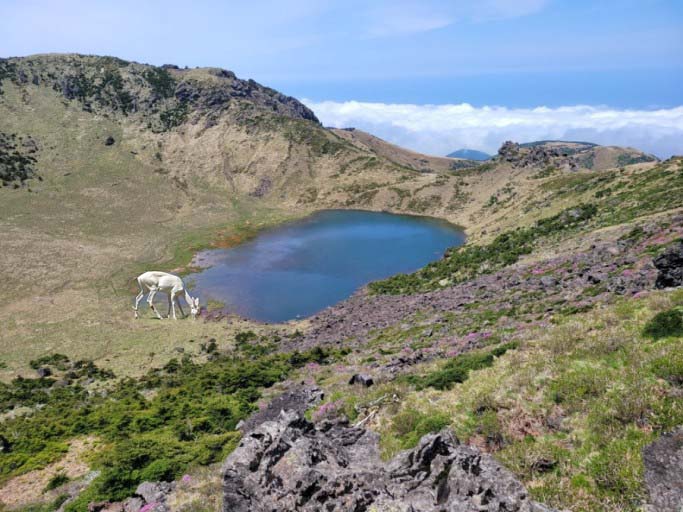 백록담은 신생대 제3기에서 제4기에 걸친 한라산의 화산작용으로 형성된 화구호(火口湖)이다.