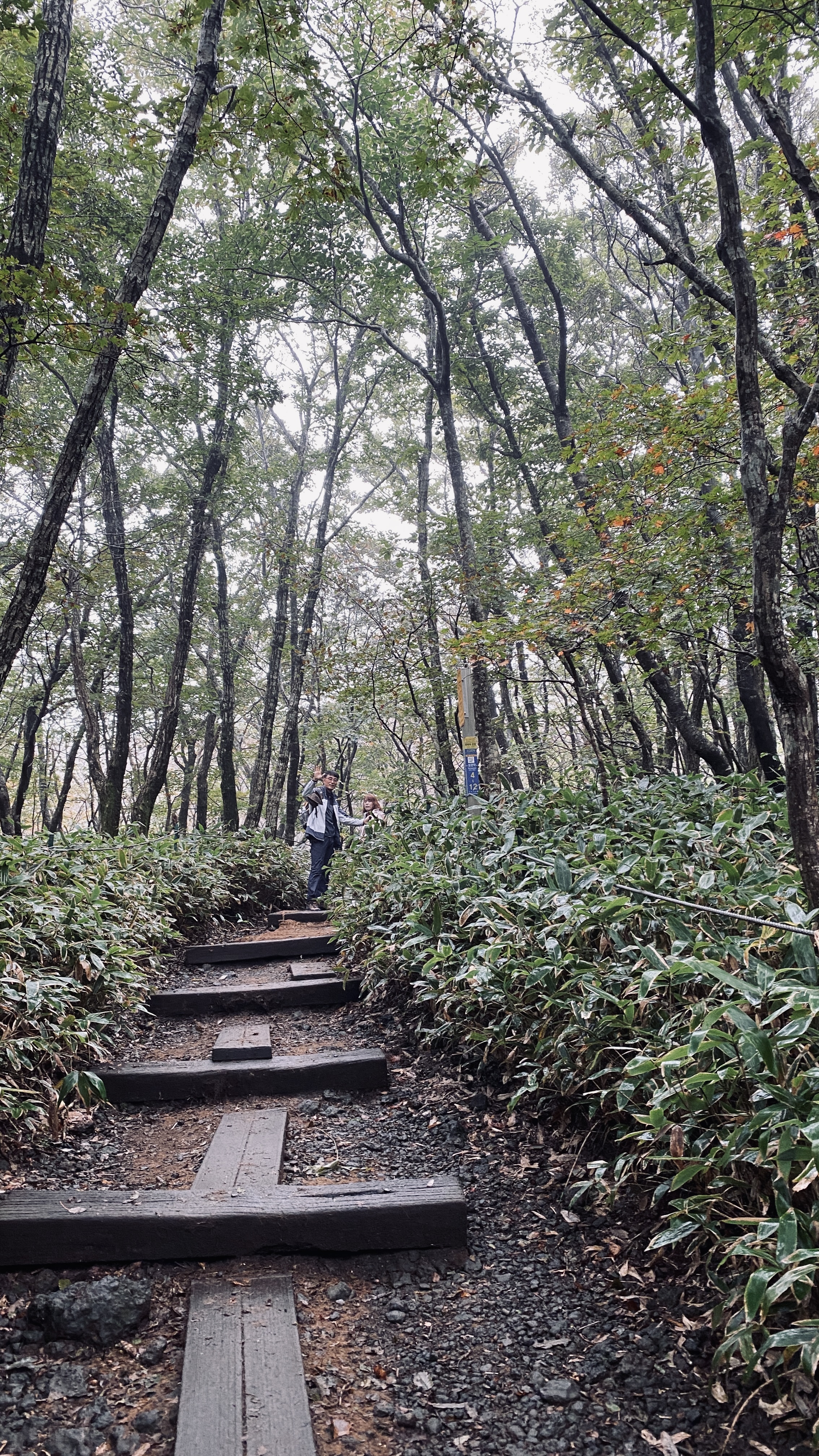 여러 산 길을 다녀봤지만 한라산처럼 모든 길이 돌 투성이인 곳은 처음이다. 그나마 다행인건 속밭 휴게소까지 1시간~1시간 20분 정도의 구간에는 친환경 야자목 매트와 나무 데크가 곳곳에 놓여있어 매우 수월한 느낌이다. 올라가다보면 나무의 종류가 바뀌는걸 느낄수 있는 산이다. 중반부에는 키가 작은 조리대나무가 큰 나무 밑에 그득하게 자리하고 있는 풍경이 특이하다.