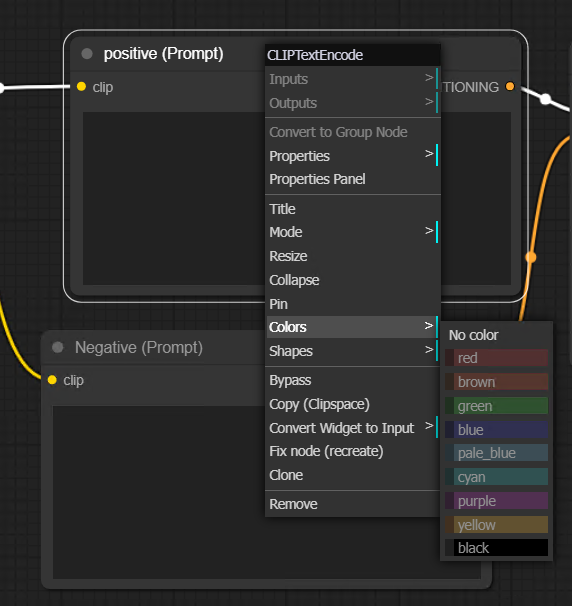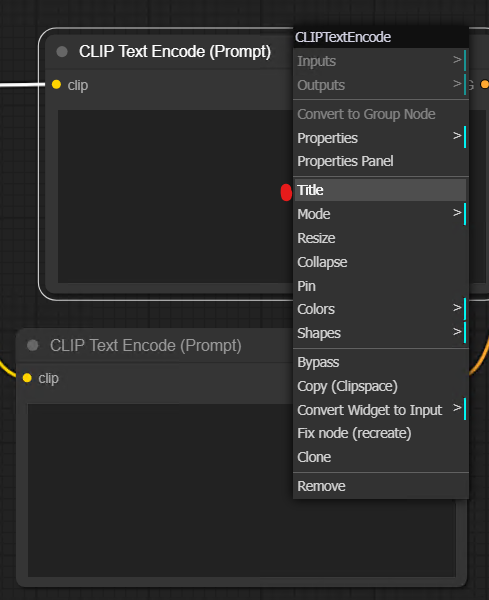 그런데 동일한 형태와 동일한 제목의 프롬프트창이 두 개이다 보니 헷갈릴 수가 있다. 혼선을 방지하기 위해선 이름을 바꾸거나 노드 컬러를 변경해주는 방법을 추천한다.