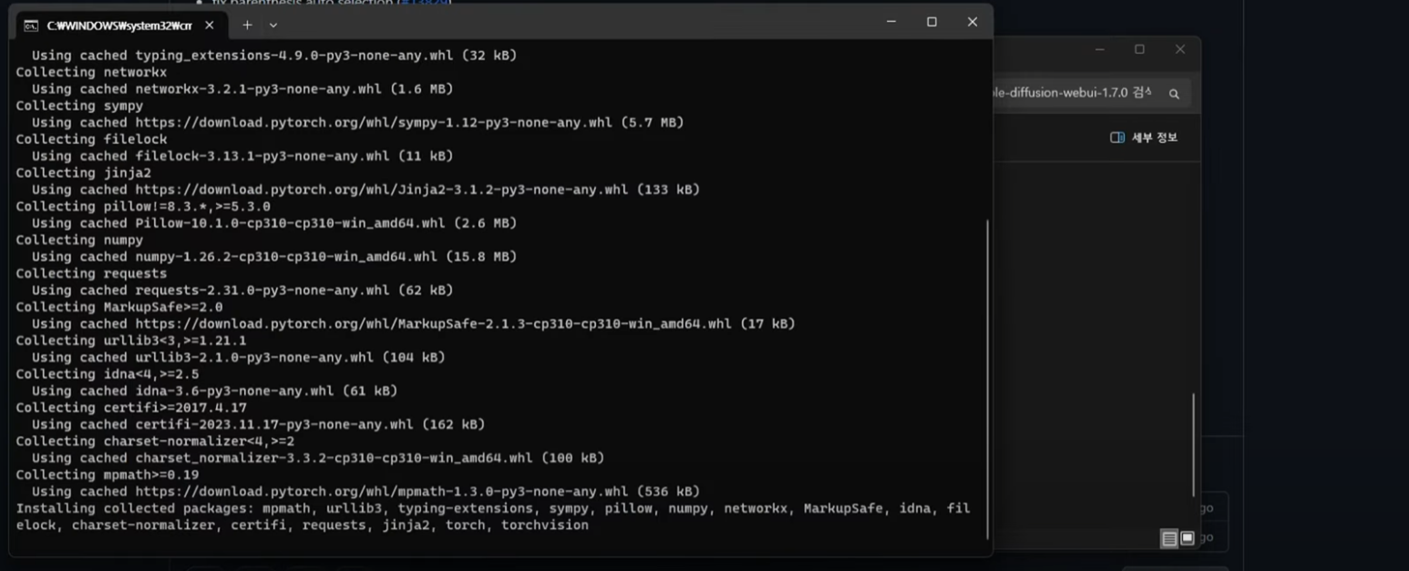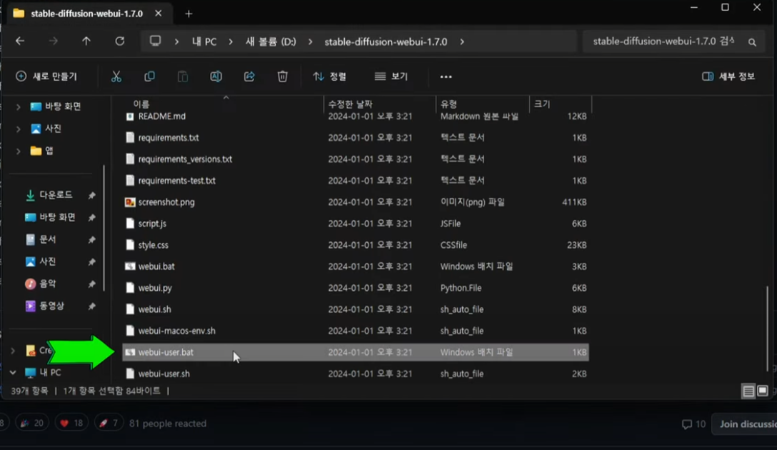- 하드디스크의 여유 공간은 최소 10GB 이상이고 체크포인트나 모델, 임베딩, 베 등 용량이 꽤 큰 파일들을 다운받고 계속 추가해야하기 때문에 여유공간을 크게 가지고 있어야 작업시 자유롭다.